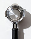 Fill the water tank with clean water. Fit the blind/backflush basket (or cleaning disk) into the portafilter and place 1 tablet in the basket.