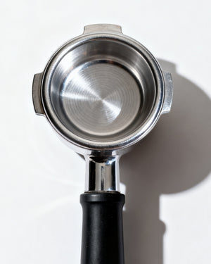 Fill the water tank with clean water. Fit the blind/backflush basket (or cleaning disk) into the portafilter and place 1 tablet in the basket.